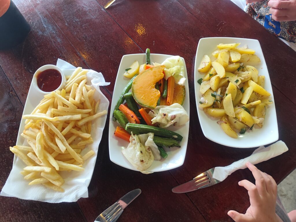 Tyle, że te warzywa to najczęściej są na targu. W hotelach i restauracjach najczęściej z wegańskich opcji dostępne są owoce, makarony z homeopatyczną ilością warzyw, roti – przepyszne naleśniki i ciecierzyca, którą niestety lubią solidnie doprawić.