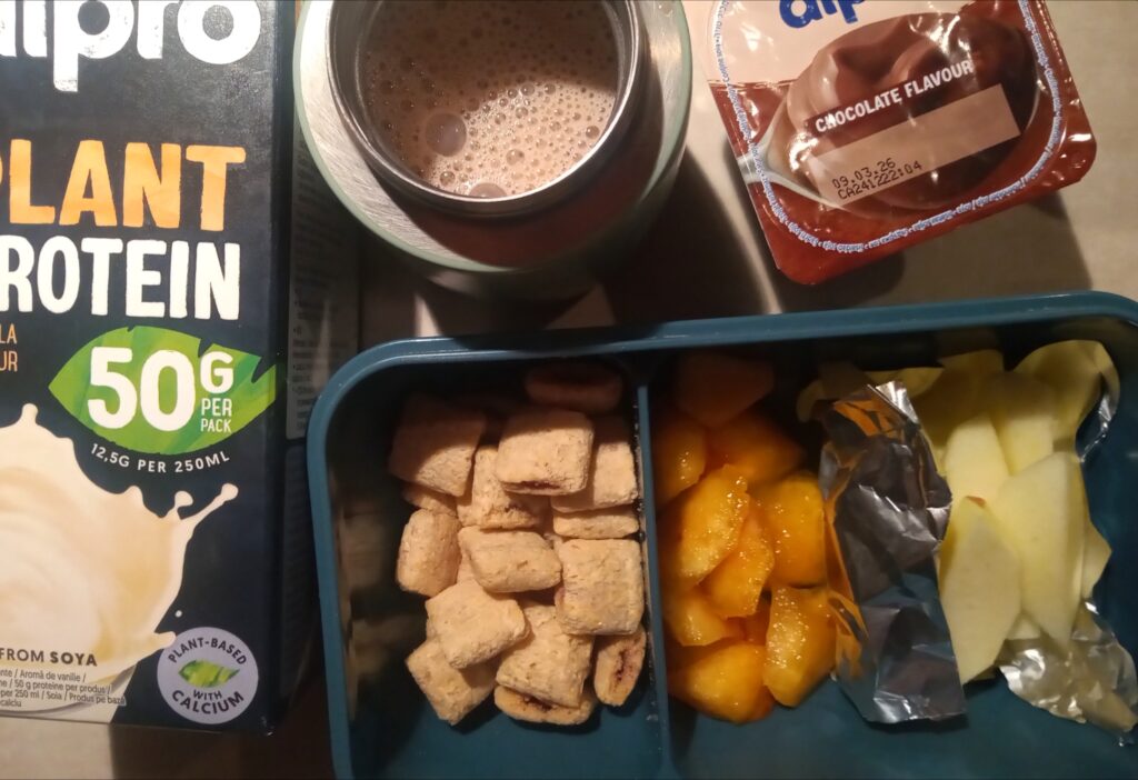 Zaczęłam przygotowywać więc mniej sugerując się menu przedszkolnym. Zawsze jednak sprawdzam, kiedy jest np. kakao do śniadania, wtedy też przygotowuję w termosiku kakao na mleku roślinnym.