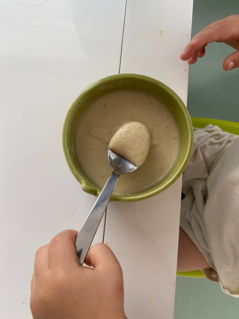 Ś𝗻𝗶𝗮𝗱𝗮𝗻𝗶𝗲: Budyń jaglany z bananem, mlekiem owsianym i łyżeczką kremu orzechowego.