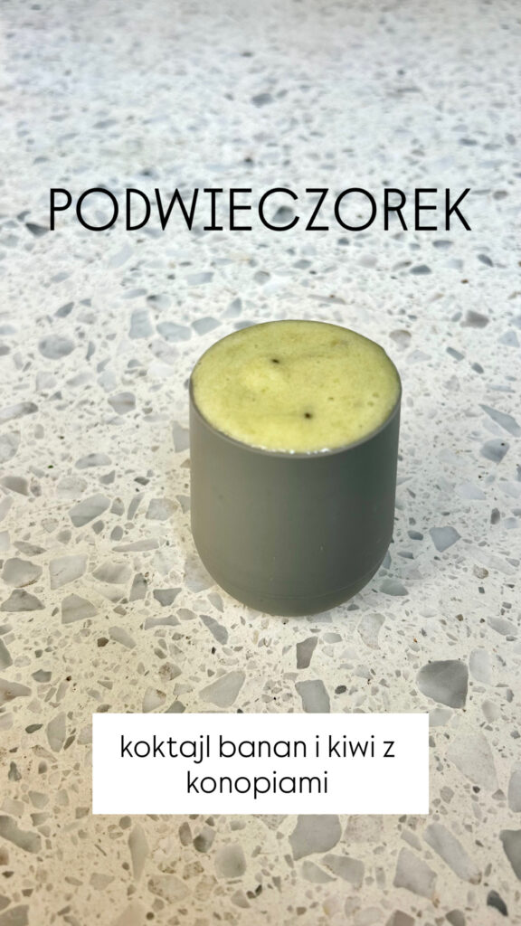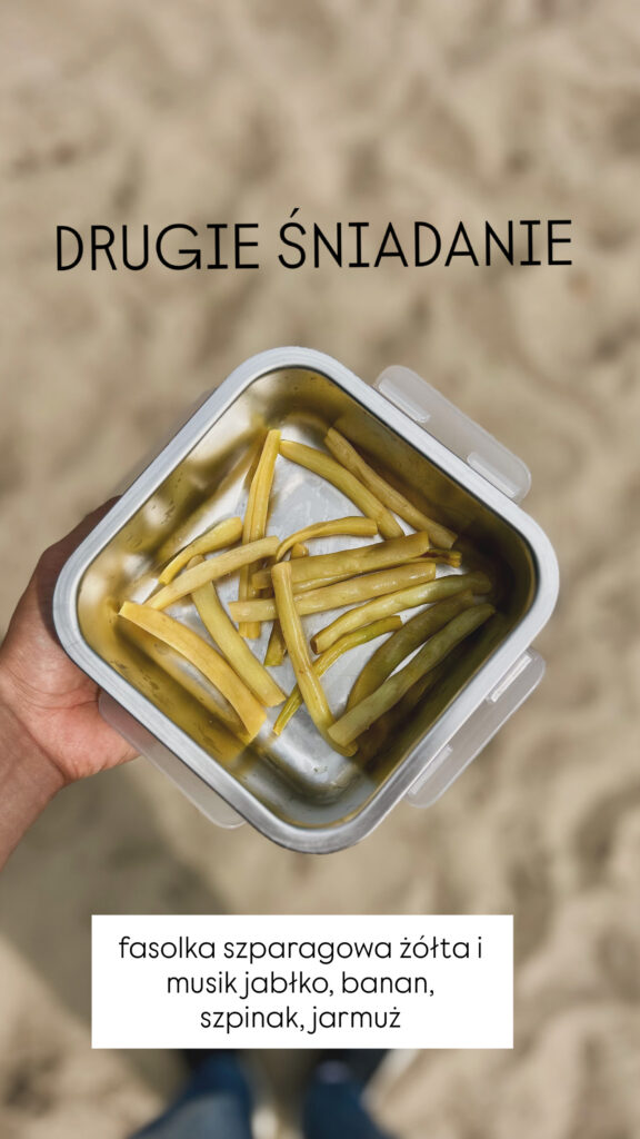 1/2 szklanki fasolki szparagowej żółtej + musik jabłko, banan, szpinak, jarmuż