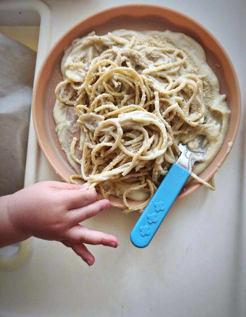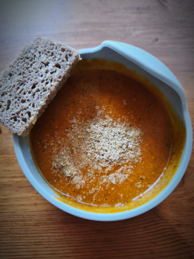 Wracam do Was z kolejnym przykładowym jadłospisem siedemnastomiesięcznej Wandzi. Akurat trafił nam się dzień z ząbkowaniem w tle. Z pierwszego i drugiego śniadania Wanda nie zjadła za dużo, więc na obiad wkroczył makaron z jednym z ulubionych sosów, a na kolację zupa pomidorowa, która przemyci wszystko.
