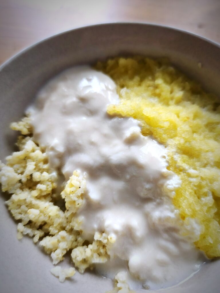Śniadanie - kasza jaglana z jabłkiem i jogurtem sojowym (składniki na dwie porcje)
