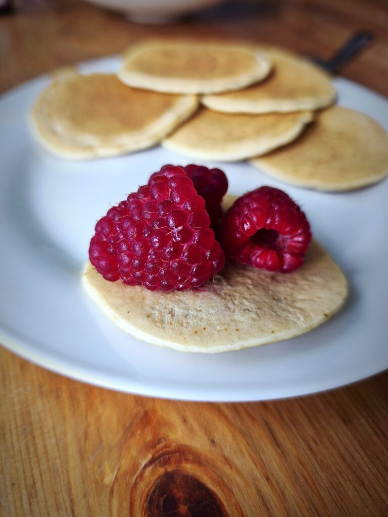 Drugie śniadanie - placuszki z mąki z ciecierzycy z malinami